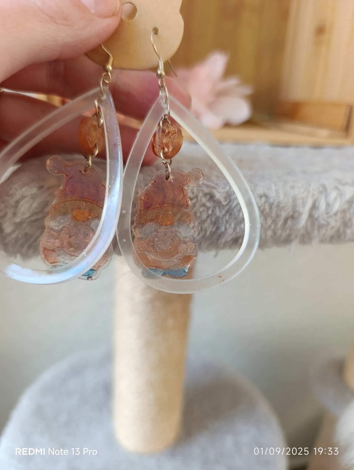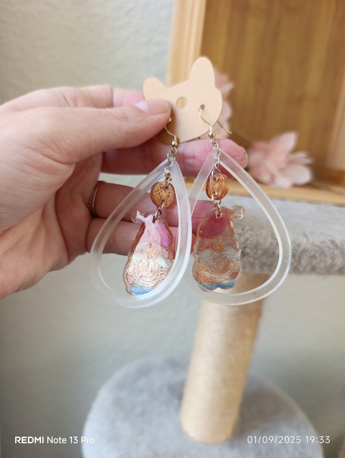 Sur crochet en argent 925 en résine époxy, très légère.