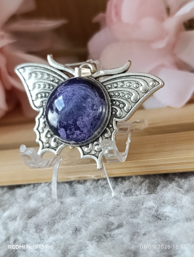 Collier en résine époxy avec ces effets uniques obtenu avec la technique Pétri.