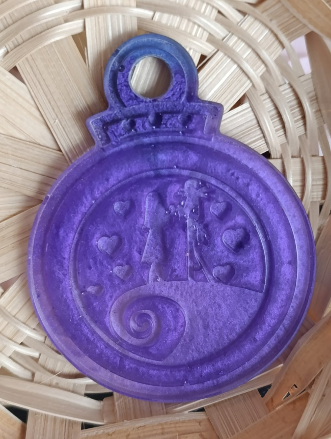 A suspendre avec le fil de pêche intégré, la décoration Crèche est faite en résine époxy.