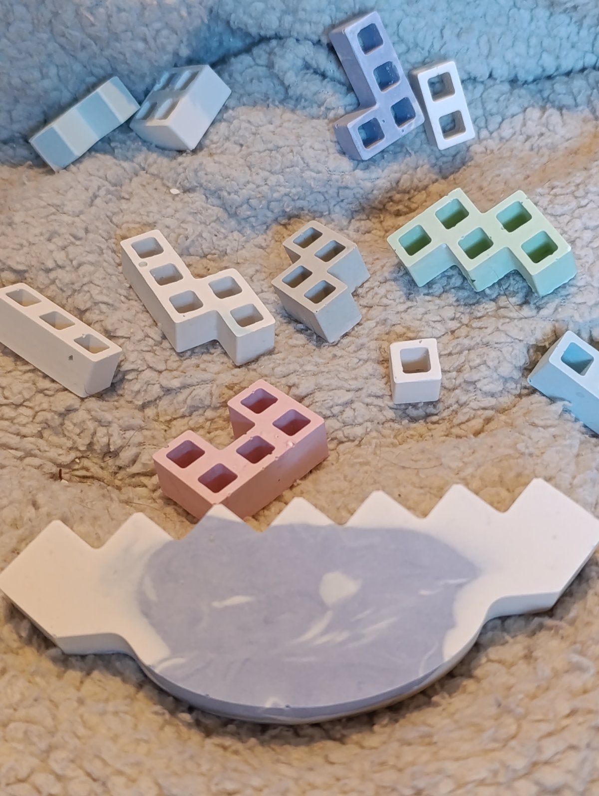 Composé de 11 petites pièces sous différentes formes. Avec une base en bascule
