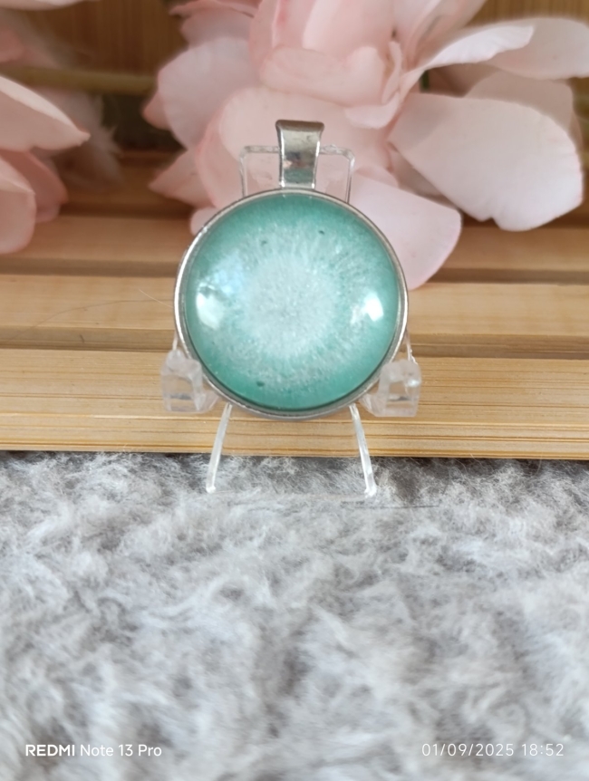 Son centre en résine époxy avec un mélange de bleu-vert et blanc nacré